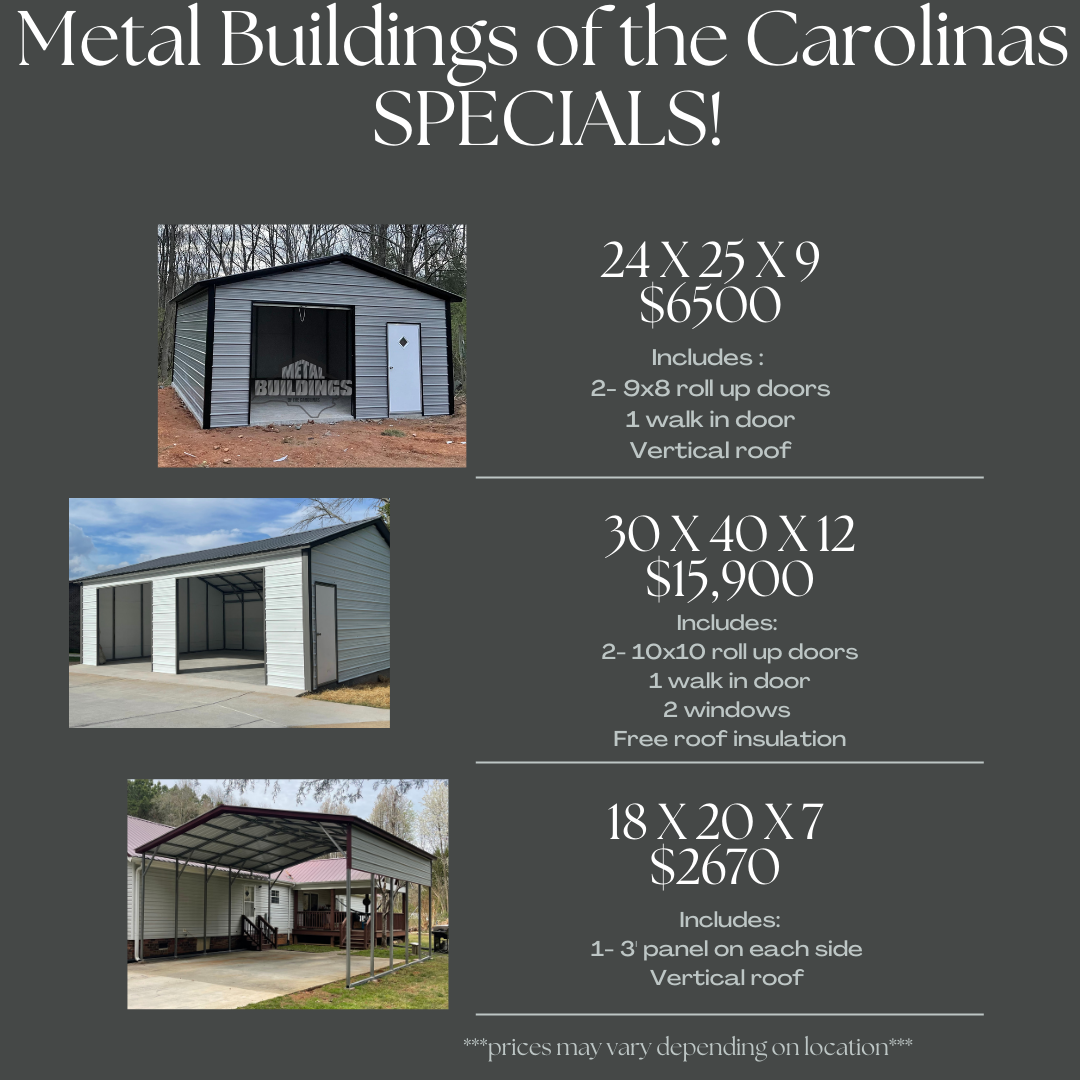 Metal Buildings of the Carolinas, LLC is located in Concord, North Carolina, serving the surrounding area in North Carolina.