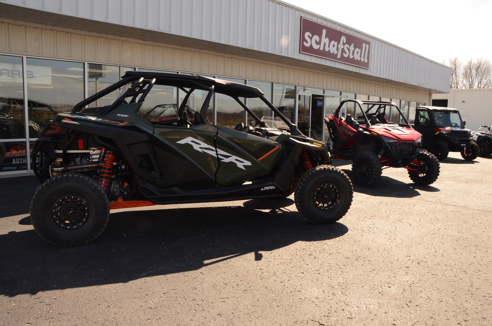 My wife and I just purchased a new Polaris 1000 EPS side by side from Noah Brown at Schafstall’s. It took me 4 trips there and shopping around at other dealers and other brands before making my decision. Actually, the decision was easy. I’m having front and back glass installed along with a roof, turning signals, side mirrors and a rear view mirror to make it road ready. I’ll have it delivered in a few days. In my opinion and from all my research, Polaris and Schafstall’s are the best.