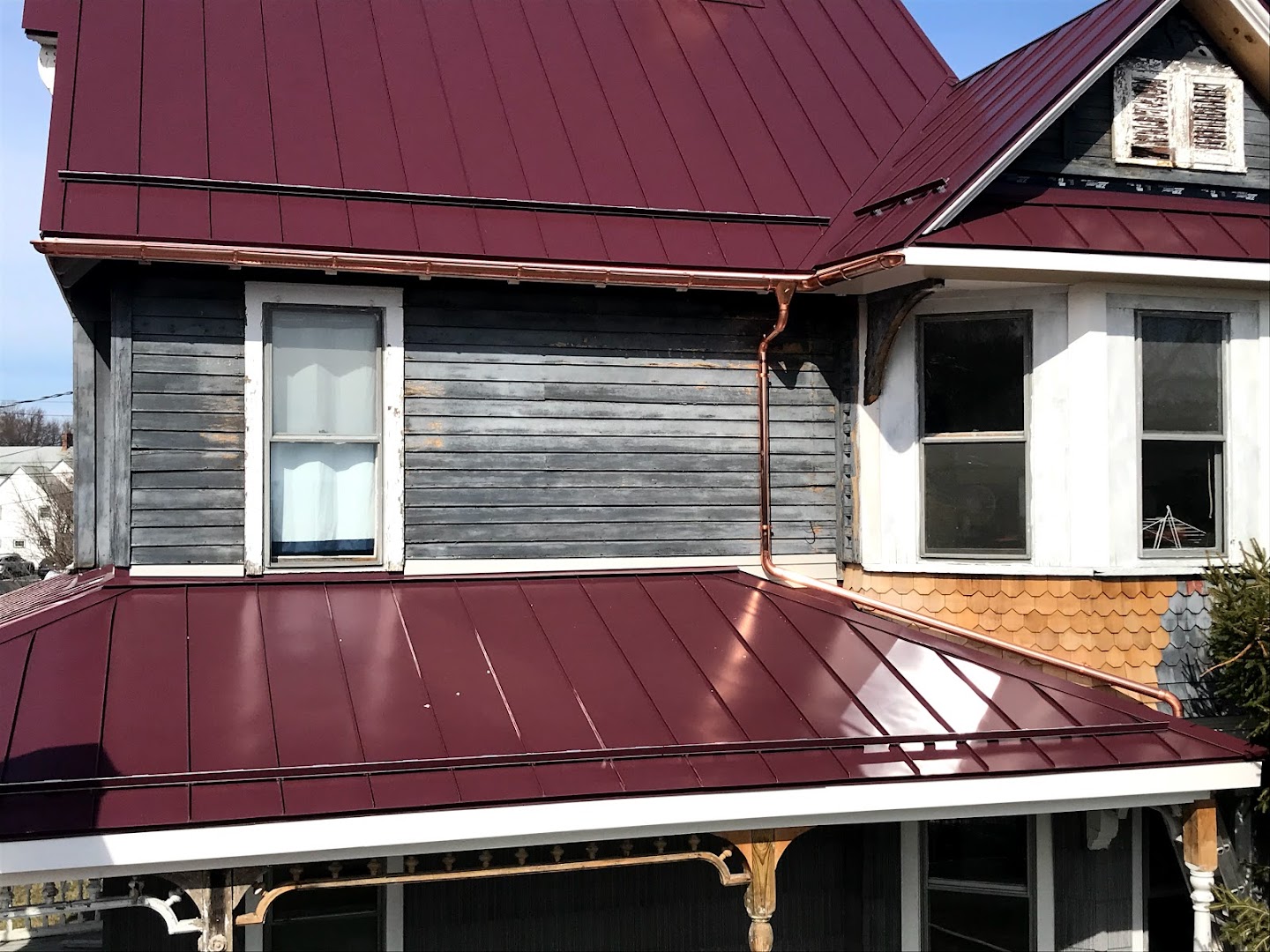 The 25-year old metal roof on our 170-year old house had been incorrectly installed and water was leaking into the house around the chimney. The roof repair required was a relatively small (two-day) job which required removal and replacement of several metal sections, repair of the rotted wood underneath, and installation of proper flashing around the chimney. We had been unable to find any metal roofers in our area who would even consider doing a repair -- some would not even return our calls. Although he's located more than an hour away from us, Vasyl replied promptly to our call and drove up to inspect the roof and meet with us. He was both friendly and professional, and did a very nice repair on schedule. We were particularly happy with his honest and thorough communications: his explanation of the problem with the original installation; his frank disclosure that because of fading that had occurred over the age of the roof, the replacement panels would not exactly match in color; and his documentation of every aspect of the work with photographs. We were entirely satisfied with his services.
